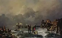 By this time, Achenbach's painting was already well known internationally. In 1852, at 25, the Art Academy in Amsterdam had admitted him as a member. Several of his works were displayed the Exposition Universelle of 1855 and were very well received. In 1859, he was honored with a gold medal at the Salon Exhibition in Paris. In 1861 he was granted an honorary membership to the St Petersburg Academy and in 1862 from the Art Academy of Rotterdam.