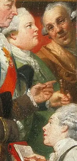 Styled Lord Windsor from birth, he was the eldest son of Other Windsor, 4th Earl of Plymouth, and the Honourable Catherine, daughter of Thomas Archer, 1st Baron Archer.[1] He was elected a Fellow of the Royal Society on 22 April 1773. He was Colonel of the Glamorganshire Militia, 6 August 1779.[2] Other Windsor, 5th Earl of Plymouth was featured in Johan Zoffany's painting Tribuna of the Uffizi painted between 1772 and 1778. The 5th Earl is one of a number of visiting English noblemen to the Tribuna room in the Uffizi in Florence, Italy. The painting is part of the United Kingdom's Royal Collection.[3]