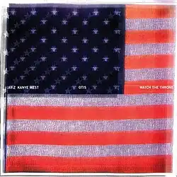 The track was subsequently released for download to the Internet as a way to promote the upcoming album.[4] On July 22, the song was released to the iTunes Store and was a free download for those who pre-ordered the album. It was sent by The Island Def Jam Music Group to rhythmic contemporary and urban contemporary radio on August 9.[7][8] The cover art for "Otis" was designed by Italian fashion designer Riccardo Tisci, who had previously designed the artwork for the "H•A•M" single cover and the Watch the Throne album cover. It features the American flag, both artist's names and the name of the song and the album.[9] The artwork was released onto the internet following the song's release and could be downloaded along with the song.[9]