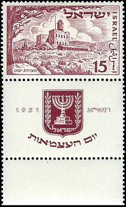 - ^ See the description: "Auction lot 295 for Doron Waide Auction No. 22, July 22, 2007". StampCircuit.com. Archived from the original on 16 July 2011. Retrieved 2 December 2008. and the image: Wallish, Otte. "Yehudah Essay". StampCircuit.com. Archived from the original on 16 July 2011. Retrieved 8 December 2008.. The first day cover artwork includes a date 5 April 1948 but may have been prepared beforehand.