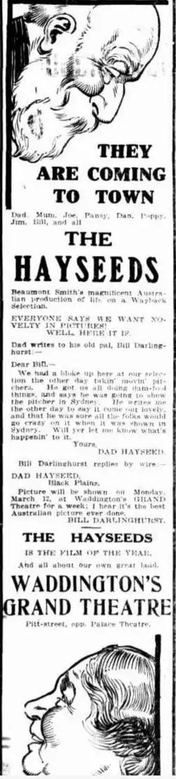- ^ "OUR FRIENDS—THE HAYSEEDS'". Daily Herald. Vol. 7, no. 2145. South Australia. 3 February 1917. p. 7. Retrieved 20 July 2024 – via National Library of Australia.