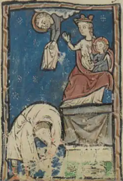 Our Lady's Tumbler is an anonymous Old French poem of 684 lines, probably written in the 1230s. It has characteristics of the Picard dialect and is preserved in five manuscripts. Its English title is conventional, derived from the title Del Tumbeor Nostre Dame supplied by the scribe of one manuscript. It refers to Mary, mother of Jesus, and a performer who engages in tumbling.[1]