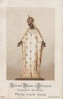 Our Lady of Africa (French: Notre-Dame D'Afrique; Arabic: السيدة الإفريقية), also known as Our Mother of Africa, is a Catholic title of the Blessed Virgin Mary associated with a statue of her as a Black woman, located in the major shrine of Notre-Dame d'Afrique in Algiers, Algeria. The devotion was spearheaded by Bishop Louis-Antoine-Augustin Pavy of Algiers, who established the basilica under that title in 1856.[1]