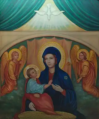 - ^ a b Santoro, Nicholas J. (2011). Mary In Our Life: Atlas of the Names and Titles of Mary, The Mother of Jesus, and Their Place in Marian Devotion. Bloomington: iUniverse. p. 46. ISBN 978-1-4620-4021-6. Retrieved 30 December 2015.
