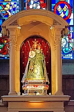 | Attributes | Blessed Virgin Mary, crowned and draped with a gilded cope, while carrying the Child Jesus holding a scepter |