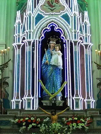 Gigantic statues of Saint Thomas the Apostle and St. Francis Xavier are placed on the main tower. The veneration of Mother Mary is celebrated every year from 1–31 May.