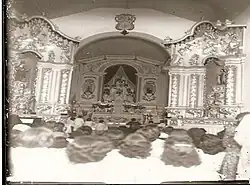 After the pieces were sold, included the main altar, the demolition of the Church of Our Lady of the Rosary of the Black People also began. The main altar had the image of Our Lady of the Rosary of the Black People enthroned, which today is located in the Church of Mount Carmel. In the two lateral niches of the main altar were the images of Saint Raphael and Saint Benedict. Both images were in the church on the day of the fire. However, the energetic reaction of the local population prevented it from being transported to São Paulo, and after the fire in the Mother Church, it is now installed as the main altar. The right side altar was dedicated to Saint Sebastian, whose image, taken to the Church of Our Lord of Bonfim, was stolen from there in 1978. The left side altar was dedicated to Saint Benedict, whose image is now in the Mother Church. The other images, ornaments, vestments, furniture, and other belongings of the temple were distributed among these three churches that still exist in the city today.[3]