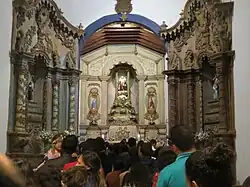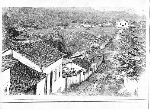 In October 1737, the Book of Deaths started to register deaths in Corumbá de Goiás, where the Chapel of Our Lady of Peñafrancia, inaugurated in 1734 and subordinated to the Rosary Parish, began to be attended by Father Antônio Soares.[1][9] The Chapel of Peñafrancia, elevated to the status of Mother Church in 1840, was the pioneer of the parishes of Abadiânia, Alexânia and Cocalzinho.[10][11][12] The Portuguese influence of the Our Lady of the Rosary Parish replicated the traditions of Pirenópolis in the Chapel of Peñafrancia in Corumbá, such as the Brotherhood of the Blessed Sacrament, Holy Week celebrations, Feast of Saint Sebastian, Feast of the Divine, Choir, Orchestra and band in the masses and processions, as well as the Cavalhadas, held in the city in September during the patron saint's feast.[9]