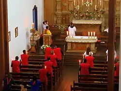 At first, the adaptations of the liturgical reform of 1955 and 1962 were not very well received by the local community; with the principle of veritas horarium, the Missa In Coena Domini was transferred to the current time, in the evening, with the rite of foot washing within the celebration, suppressing the mandatum sermon. Currently, the ceremony includes the participation of the Choir and Orchestra Nossa Senhora do Rosário, which performs a mass from its repertoire, and the vigil with the Brotherhood guard, which remains until Good Friday. Since 2008, the Stations of the Cross Pastoral has staged the arrest of Christ in the churchyard of the church after the mass In Coena Domini.[46][21]