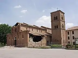 In May 2012 the church was severely damaged by the Emilia earthquake: the wall of the left aisle collapsed, the façade is unsafe and the whole church is unfit for use.[4]