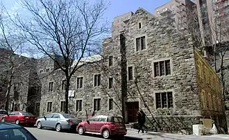 The merged congregation continued to acquire property in Washington Heights speculating on the area's development with the extension of the New York City Subway's IRT Broadway–Seventh Avenue Line (1 train) and IND Eighth Avenue Line (A train). A hospital was planned but not begun. A parish house was started and completed in 1928 at a cost of $175,000 to designs by Mayers, Murray & Phillip of 2 West 47th Street.[1] After the Stock Market Crash of 1929, plans for a new Gothic Revival church, designed by Mayers, Murray & Phillip, were scuttled. The congregation moved into the parish house, which was renamed the Cornerstone Center, "providing space for a video studio, dance and performance space, a kindergarten, a church for the deaf, and facilities of The Reform Jewish congregation Beth Am, "The People's Temple."[2]