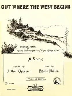 - Sheet music for "Out Where the West Begins", by Estelle Philleo, lyrics by Arthur Chapman, Forster Music Publisher, 1917.