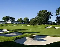 Golf – precision club and ball sport, in which competing players (or golfers) use many types of clubs to hit balls into a series of holes on a golf course using the fewest strokes.