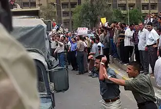 - ^ Patrick E. Tyler (21 March 2003). "A nation at war: The attack; U.S. and British troops push into Iraq as missiles strike Baghdad compound". The New York Times. p. B8.
