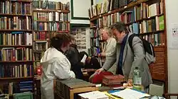 ![]() Owen Dudley Edwards talking with an audience member at the West Port Book Festival | |