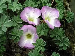 Oxalis adenophylla, commonly known as Chilean oxalis or silver shamrock (among other common names), is an Argentinian and Chilean alpine plant. In Chile, it is distributed between the Santiago Metropolitan Region and the Aysen Region.[1] It is most notable for its leaves, which are palmately divided into as many as 22 leaflets, covered with silvery hairs.[2] The light pink flowers are wider than the leaves.