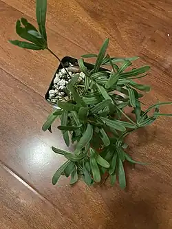 This plant is rizhomous, stemless and grows in clumps like most species of the genus Oxalis. There are multiple leaflets on a single leaf.[2] The flowers of this plant can vary depending on the variety, but are similar to typical Oxalis flowers, with five identical petals.[2]