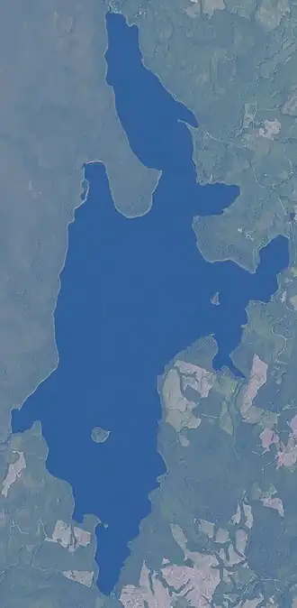 The Makah name for Lake Ozette was Kahouk meaning "large lake".[2]8 mi (13 km) long and 3 mi (4.8 km) wide, Lake Ozette is contained within the northern boundary of the Olympic National Park's coastal strip.[3] It is 29 ft (8.8 m) above sea level and is drained by the Ozette River in the north end. Ozette, Washington, lies at the north end of the lake. At 331 feet (101 metres) deep, its bottom lies more than 300 feet (91 metres) below sea level.[2]