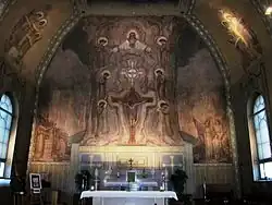 He is best known for his work decorating the Notre-Dame-de-la-Présentation church in Shawinigan South, Quebec, a project which took him thirteen years, until his death.[4] The work was completed by his assistant, Gabrielle Messier. Notre-Dame-de-la-Présentation church was designated a National Historic Site in 2004 and a federal marker reflecting that status was erected at the church in 2005.[5][6]