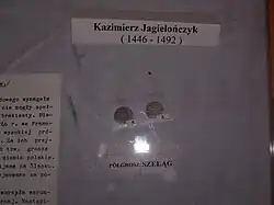 Półgrosz (półgroszek, lit. half-grosz) was a silver and later copper coin worth ½ of grosz and 9 denars, minted in Poland, Lithuania and Silesia. Polish silver półgrosz weighing 1-1,7g was minted mainly from c.1367 to 1526 and occasionally from 1580 to 1792, from 1765 coin was minted in copper. Lithuanian silver półgrosz weighing c.1,3g was minted in 1495–1566.[1]