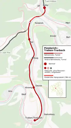 ![]() Map of the Pünderich–Traben-Trarbach line | |||||||||||||||||||||||||||||||||||||||||||||||||||||||||||||||||||||||