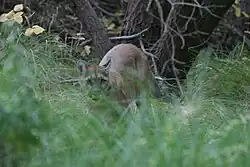 In August 2005, approximately eleven months after P-5, P-6, P-7, and P-8 were born, P-2 began considerably expanding her range, presumably to show her offspring areas for dispersal.[1] Shortly after, P-2 was killed by P-1, something researchers believe was done either in a fight over food or more likely because she was protecting her children from P-1.[3] P-5, P-6, P-7, and P-8 all dispersed after their mother's death, but even so, P-5 and P-7 were killed by P-1 the following year, as was P-8 by P-9.[4] Fathers killing their male offspring is common amongst mountain lions, although killing a mate or a daughter as P-1 did is not. Researchers believe this behavior is exacerbated by the Santa Monica Mountains, where the land is fragmented and locked-in.[1]