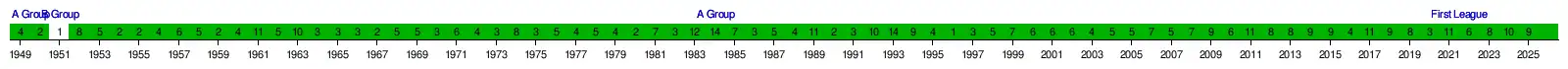 Slavia is one of only two Bulgarian football clubs that have never been relegated (the other being Levski Sofia), although the club has been divided into two separate clubs and one of them that carries Slavia records and statistics (Udarnik Sofia) had been expelled to the Second Division, which continued for a season (1951), for no other reason, but politically arranged football reform. The other separate entity (Stroitel Sofia) which is now defunct and regarded as a different club had remained in First Division. Later on the two clubs reunited again.
