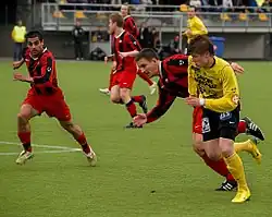PK-35 (originally Pallokerho-35) is a Finnish men's professional football club, based in Helsinki. It currently competes in the Ykkösliiga, the second-tier of men's football league in Finland. The club is based at the Algeco Areena in the Pihlajamäki district of Helsinki, and its colours are red, black and white. The club has played mostly in the lower divisions during its history, except for the lone season in top-tier Veikkausliiga in 1998.