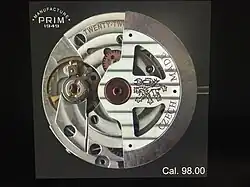In 1949, the subsidiary of company Chronotechna Šternberk was established in Nové Město nad Metují, specializing in the production of personal watches (wristwatches and pocket watches). The first prototype watches were made in 1954 and were marked 'Spartak', the 'PRIM' brand was registered in 1956, the serial production started in 1957, thus Czechoslovakia has become one of only twelve countries in the world capable of producing wrist watches.[1] It was the only manufacturer of watches in Czechoslovakia, reaching about half a million watches produced annually just before the Velvet Revolution.[2][3]