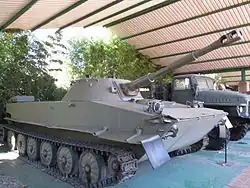 The PT-76 is a Soviet amphibious light tank that was introduced in the early 1950s and soon became the standard reconnaissance tank of the Soviet Army and the other Warsaw Pact armed forces. It was widely exported to other friendly states, like India, Indonesia, Iraq, Syria, North Korea and North Vietnam.