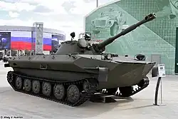After World War II, the concept of light tanks was resurrected in the USSR. They were to be used in reconnaissance units and therefore an amphibious ability was essential. The requirements stated that the vehicle should be able to cross water obstacles with little preparation. Many prototypes of such light tanks were built in the late 1940s. The most successful was "объект 740" (Object 740) designed by the engineer N. Shashmurin working at the VNII-100 institute in Leningrad (a research institute of Chelyabinsk Tank Factory ChTZ) in 1949–1950, under an initial supervision of Josef Kotin from Kirov Plant.[2] The vehicle was successful because it had a simple design, good navigational traits and a good cross country capability. At the time, its water-jet design was innovative.[3]