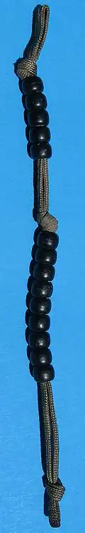 Pace count beads, pacer beads or ranger beads are a manual counting tool used to keep track of distance traveled through a pace count. It is used in military land navigation or orienteering.[1] Stringed beads found at stoneage sites in Africa may have been used for pace counting, and modified Japamala have been used to keep pace.[2][3] A typical example for military use is keeping track of distance traveled during a foot patrol.[4]
