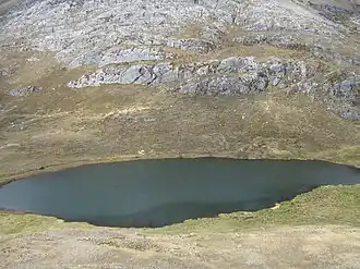 Yanaqucha ("black lake") at the foot of Jupa Tawqaña