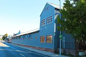 The Pacific Coast Railway Company Grain Warehouse is a warehouse building located at 65 Higuera St. in San Luis Obispo, California. The warehouse is the only surviving building from the Pacific Coast Railway's headquarters as well as the only extant grain storage building in San Luis Obispo. The date of the building's construction is uncertain; city records state that it was built in 1885, but it may have been rebuilt in 1892–93 after a fire. The wood frame building has corrugated iron paneling on its walls and roof, a typical design for contemporary storage buildings. The Pacific Coast Railway used the warehouse from its construction until the railway folded in 1942; the warehouse held grain grown in the region, which was at the time a major producer of grain and beans.[2]