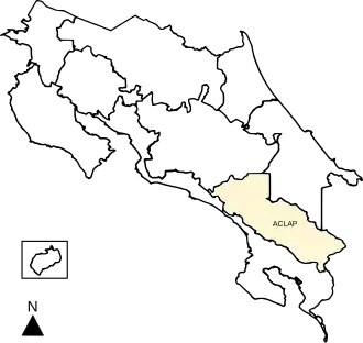 ![]() Location of the area, labeled ACLAP in the southeast of the country. | |