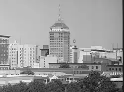 The Pacific Southwest Building (also known as the Security Bank Building) is a 15-story, 67 m (220 ft) high-rise completed in 1925 in downtown Fresno, California. The tower's antenna rises to 315 ft (96 m). Original construction took eighteen months and cost $1,200,000 for the headquarters for the Fidelity Branch of the Pacific-Southwest Trust and Savings Bank.[3] Originally, a beacon on top of the tower served as a frost warning to farmers within a 30-mile radius.[4]