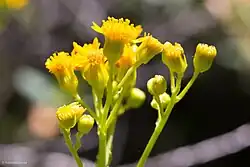 Packera clevelandii is an uncommon species of flowering plant in the aster family known by the common name Cleveland's ragwort. It is endemic to California, where it is known from only two small regions, a section of the North Coast Ranges around Napa County and a part of the Sierra Nevada foothills on the opposite side of the Sacramento Valley. The plant grows in shrubby chaparral on serpentine soils.[1]