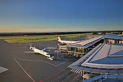 A conference centre with several conference rooms can be found at the airport and a hotel was opened there in October 2006. An industrial park with several companies is located in the close vicinity.