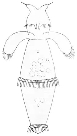 The body length is up to 1.5 mm.[2] Paedoclione doliiformis has no shell.[2]