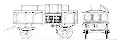 The Rochdale system was first used in 1869. It used a wooden tub, or pail (sometimes half of a petroleum barrel), which was placed under the closet seat. The pails were often circular (to aid cleaning),[10] and were designed to be easily handled and of a size that encouraged regular collections.[11] The top of the pail carried a cast iron rim about 3 inches deep to receive a tight-fitting inner lid. The pails were collected on a weekly basis during the day. Each pail was secured by its lid and loaded onto a sealed 24-bay wagon to be taken to a depot where they were emptied, cleaned and returned. While the pail was removed from the closet, a replacement was installed in its place. In 1874, Rochdale Corporation employed five such wagons in full-time service, collecting from 3,354 privies spread across the town. By contrast, with a much larger population, Manchester Corporation employed 73 wagons.[12] By 1875, 4,741 pails were in use, and in 1876 the number was 5,566. A separate cart accompanied the wagon to collect other household refuse which was collected from a separate chamber in the pail closet.[13][14]