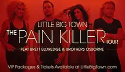 The Pain Killer Tour was the third headlining tour by American country music band Little Big Town. The tour was in support of their sixth studio album Painkiller (2014), and began on November 8, 2014, in Youngstown, Ohio.[1] It concluded on November 21, 2015, in Spokane, Washington. Little Big Town consists of Karen Fairchild, Jimi Westbrook, Kimberly Schalpman and Philip Sweet.