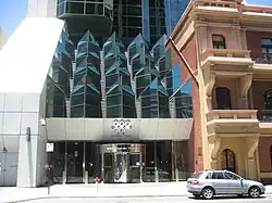 The redevelopment entailed demolition of much of the interior wallspaces of the old hotel, however, the exterior façades facing the two main streets are largely intact, if slightly shortened on the William Street frontage. A glass covered atrium joins the tower on the former hotel so that the tower entrances double as undercover access to the building.[1][24]