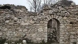 The main entrances of the castles were facing north, similarly to the Shahbulag Castle, being protected from a direct access by prismatic gate towers with L-shaped passages extended outward.[7] The upper parts of the Panah Ali Khan's Shusha castle have not been preserved. E. Avalov noted that in Panah Ali Khan's castle, as well as in the Shahbulag castle, and in the castle of Gara Boyuk Khanim, there was a two-story gate tower.[7]