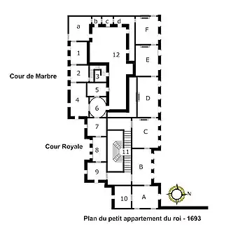Key to the plan of the petit appartement du roi