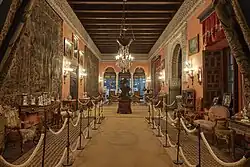 The palace is fitted with long passageways.[6] As in the Casa de Pilatos, the staircase of this palace was built beneath a vaulted roof.[1] At the top floor is a room whose ceiling has an octagonal shape and is decorated with gold alfarje.