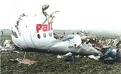 Palair Macedonian Airlines Flight 301 was a scheduled international passenger flight from Skopje to Zurich, operated by Palair Macedonian, the then-flag carrier of Macedonia, now called North Macedonia. On 5 March 1993, the aircraft operating the flight, a Fokker 100, crashed shortly after taking off from Skopje Airport in snowy conditions. Out of the 97 passengers and crew members on board, only 14 survived. At the time, it was the deadliest air disaster in North Macedonia.[2][3]