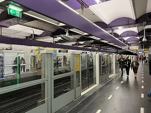 As part of the automation of line 1, its platforms were upgraded during the weekend of 7 and 8 February 2009, then fitted with platform screen doors in October 2010. The corridors of the station were renovated a second time on 31 December 2014, reviving the bevelled white tiling as part of the RATP un métro + beau program.[1]