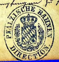 Stamp of the Palatine Railways Division (Pfälzische Bahnen Direction) in 1874