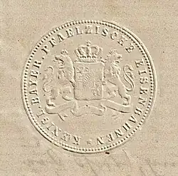 Embossed seal of the Palatine Railways, on an 1874 letter