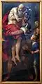 Raimondo and Simone were mainly responsible for patronizing the construction of the palace, and the decoration of the piano nobile. Such decoration began in 1707 with paintings by Carlo Antonio Rambaldi, and quadratura by Antonio Dardani. Abbot Filippo is said to have been instrumental in deciding on the choice of the subjects and iconography for painting, including the ceiling depicting the Marriage of Ariadne and Bacchus (by Michelangelo Ricciolini and his son Niccolo) with vaults the hall decorated with a dozen rococo canvas paintings (1710-1715) on episodes from the Aeneid, painted by among the most prominent Italian artists of the time.